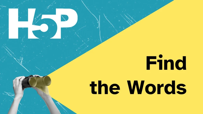 Im H5P-Inhaltstyp „Find the Words” kann aus einer Liste von vorgegebenen Wörtern ein Buchstabengitter erzeugt werden, in welchem die Wörter gefunden und markiert werden müssen.