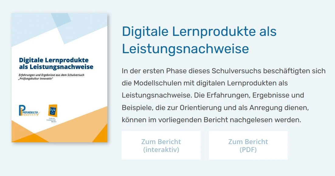Schülerinnen und Schüler lernen dabei mit und über digitale Medien. Im Schulversuch „Prüfungskultur innovativ“ der Stiftung Bildungspakt geht es schwerpunktmäßig darum, digitale Aufgabenformate für eine neue Lern- und Prüfungskultur zu entwickeln, die kooperative und kreative Herangehensweisen auch in Prüfungssituationen erlauben.