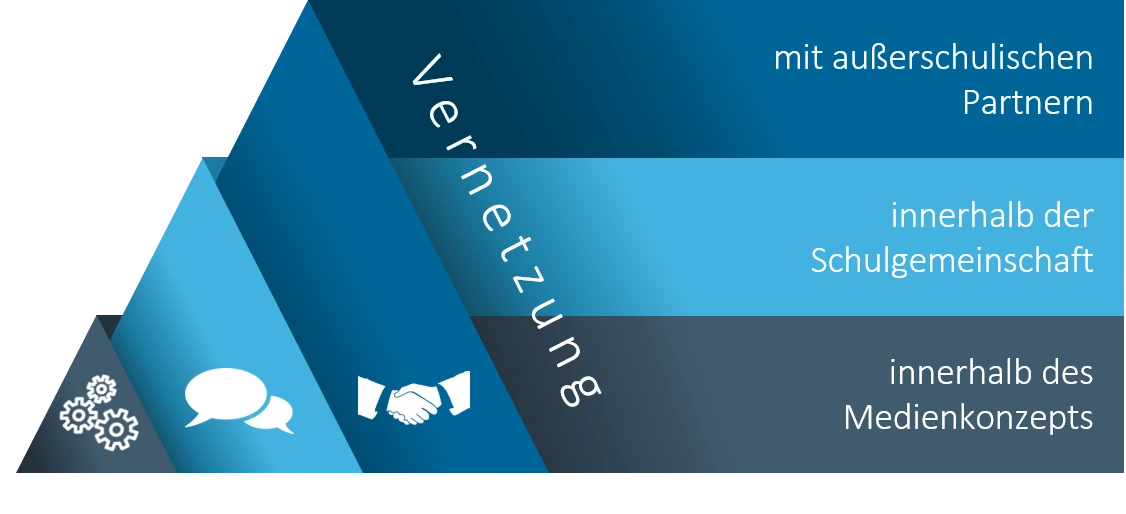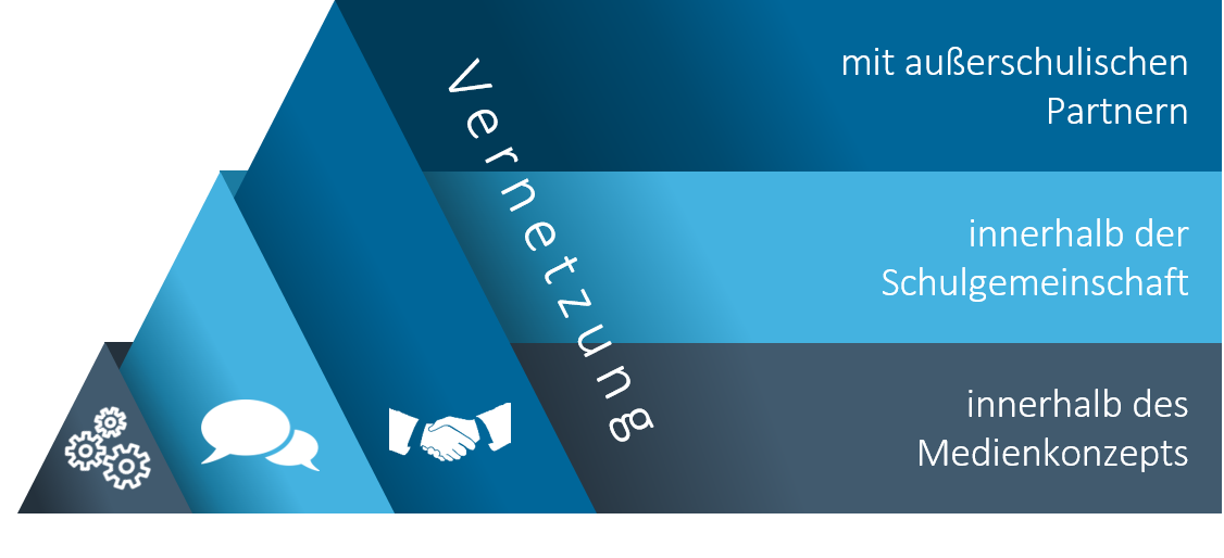Die Weiterentwicklung des Medienkonzepts hat das Potential, die Vernetzung innerhalb der Schulgemeinschaft sowie über die Schule hinaus zu intensivieren, Kooperation und Austausch zu steigern, Gestaltungsmöglichkeiten für verschiedene schulische Akteure zu eröffnen und deren jeweiligen Stärken zu nutzen. Eine vernetzte (Medien-)Bildung, die im Medienkonzept systematisiert und konkretisiert wird, kann und soll die Antwort für die Herausforderungen einer vernetzten (Medien-)Welt sein.