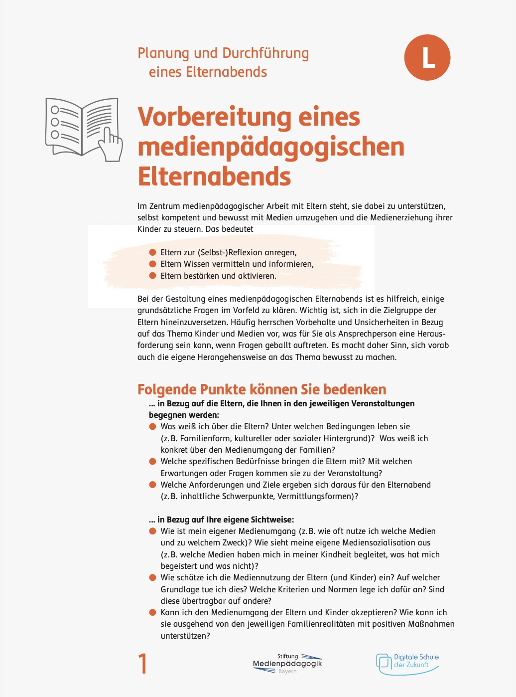 Materialien zur Planung und Durchführung von Elternabenden