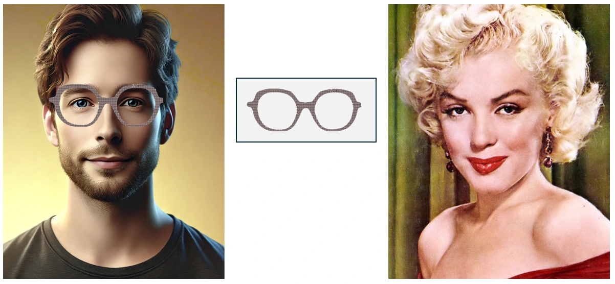 Ein weiteres Beispiel für ein Adversarial Attack ist eine Brille, die mit einem speziellen Adversarial Muster bedruckt ist. In einem Experiment gelang es Forschenden, Gesichtserkennungssysteme mithilfe solch modifizierter Accessoires derart zu manipulieren, dass ein Mann mit dieser speziellen Brille als Marilyn Monroe identifiziert wurde (Sharif, 2016).