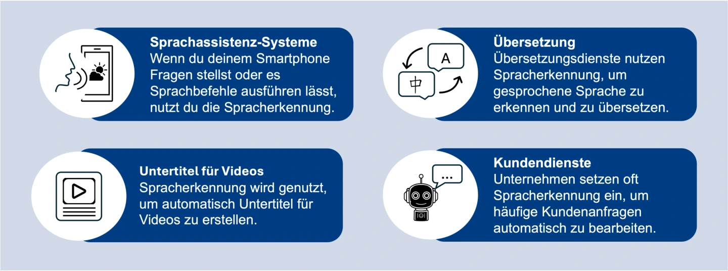 KI-Systeme können gesprochene Sprache in Text umwandeln. Hier sind Beispiele dafür: