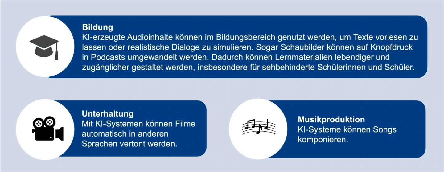 Hier sind Beispiele, wofür KI-generierte Audios genutzt werden können.