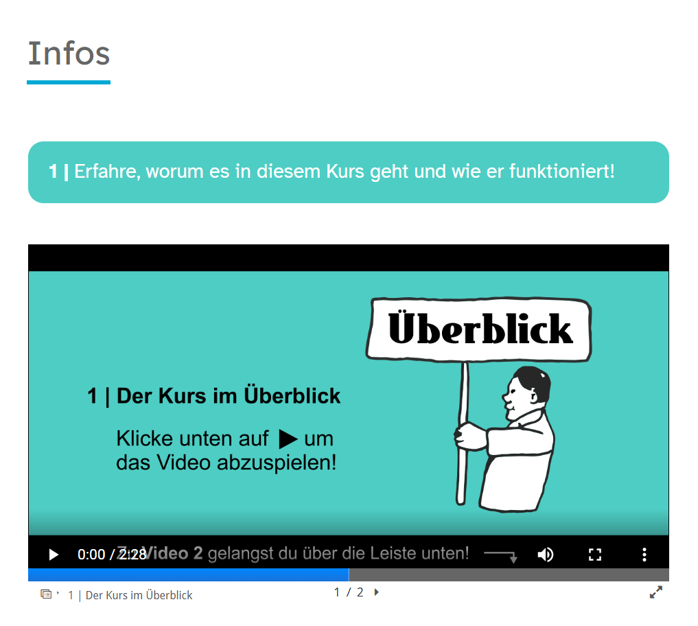 Achten Sie außerdem auf eine übersichtliche Gestaltung und Gliederung Ihrer Lernumgebung (z.B. mebis-Kurs).