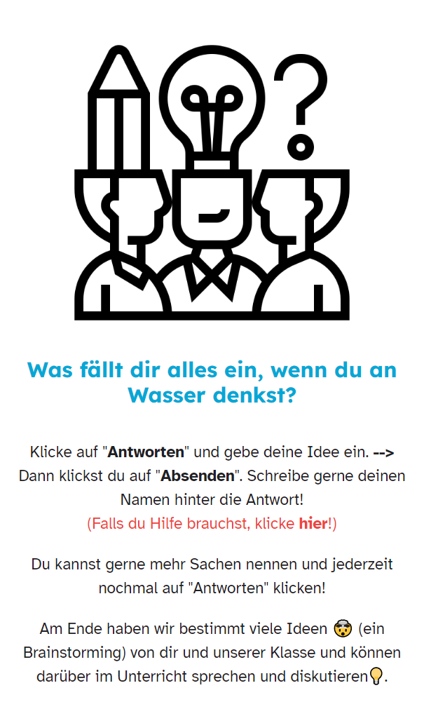 Um das Vorwissen der Schülerinnen und Schüler zu aktivieren, können Sie bei jedem Thema zunächst ein Brainstorming in Form einer Wortwolke, einer Mindmap oder einer kleinen Umfrage durchführen. Digitale Apps eignen sich ebenfalls gut für diese Phase.
