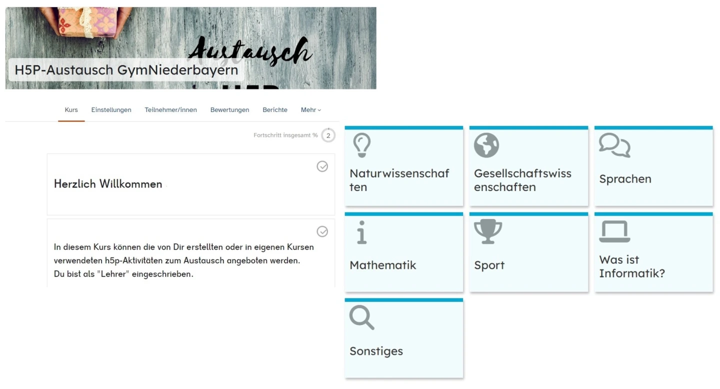 Interaktive Unterrichtsbausteine für die mebis Lernplattform (H5P-Aktivitäten) können geteilt werden.