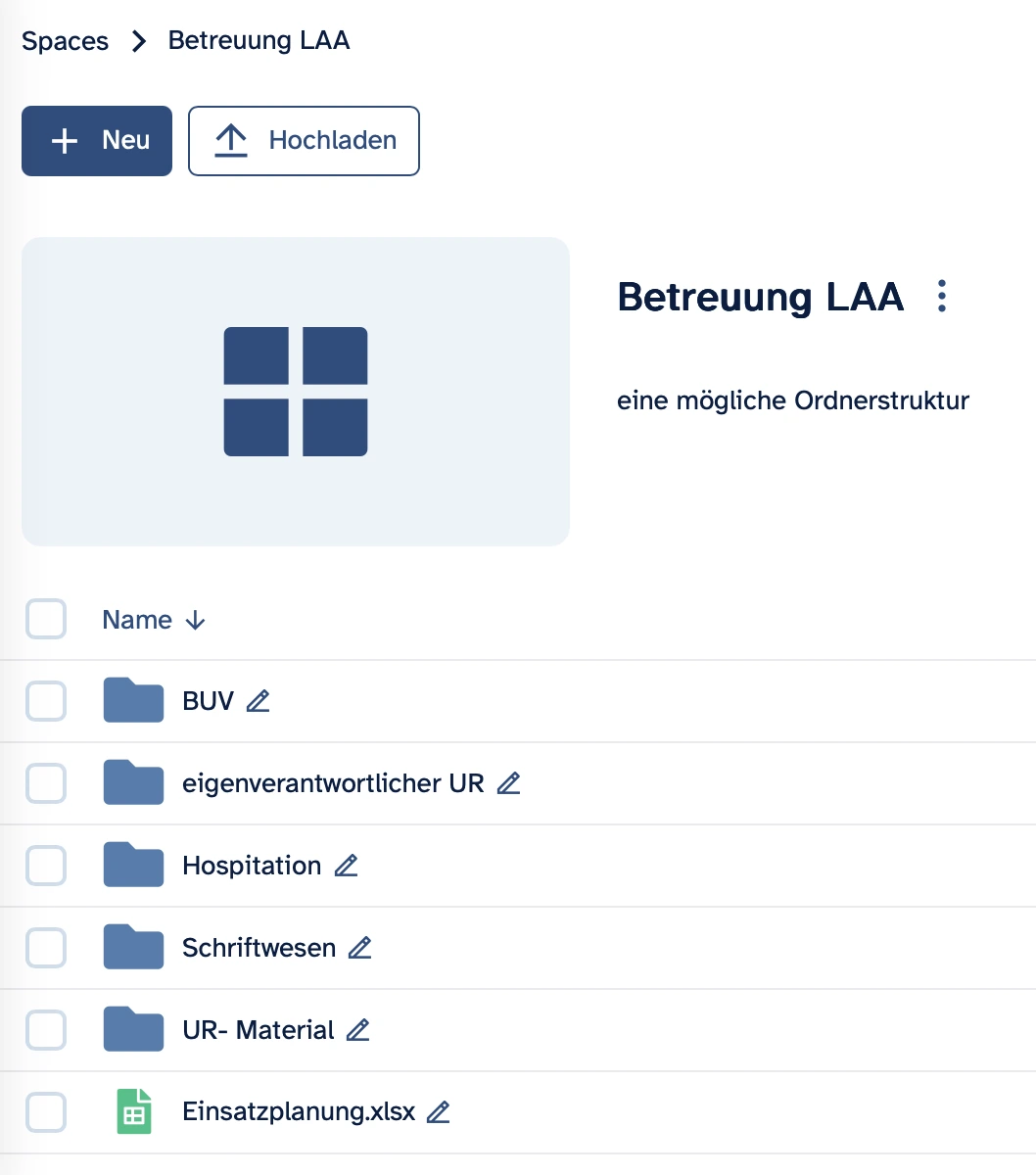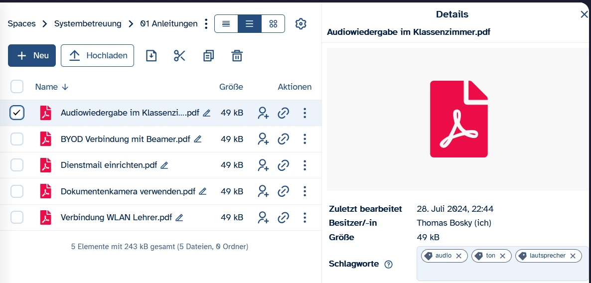 Lehrkräfte eines Jahrgangs oder Fachbereichs können über ByCS-Drive eine ihren Bedürfnissen entsprechende Ordnerstruktur anlegen (z. B. nach Fächern, Themen oder Schuljahren) und dort Arbeitsblätter, Präsentationen und Projekte zentral ablegen. So entfällt das wiederholte Erstellen von Materialien, und neue Kollegen und Kolleginnen können schneller eingearbeitet werden.
