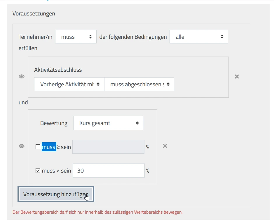 In der mebis-Lernplattform können Sie den Lernenden multimediale Rückmeldungen oder Hilfen individuell zur Verfügung stellen. Die Verfügbarkeit der Multimediainhalte lässt sich dabei durch Einstellungen zum Aktivitätsabschluss und zu Voraussetzungen steuern.