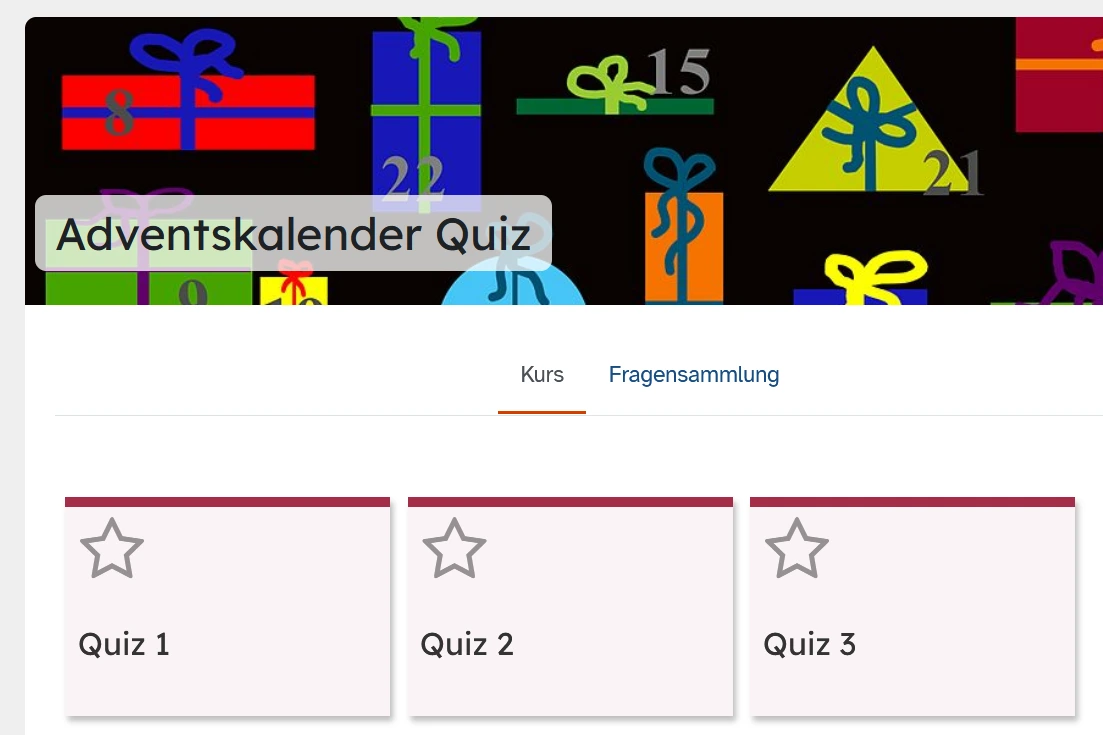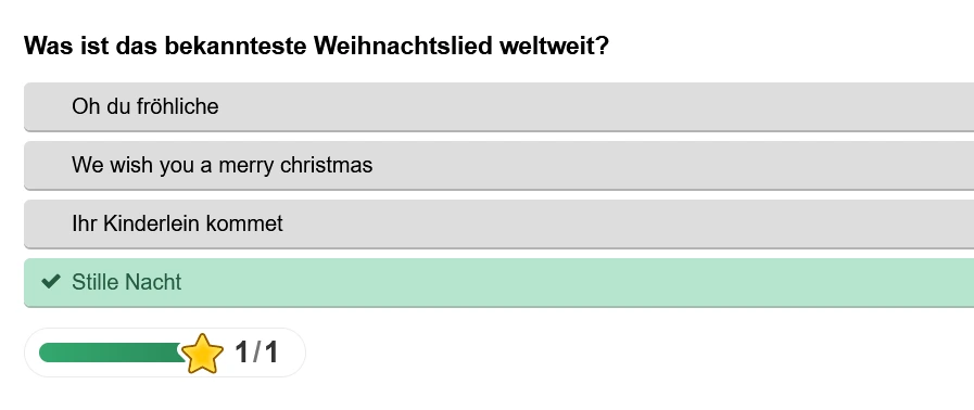 Für einen digitalen Adventskalender wurden von einer 8. Klasse am Förderzentrum Multiple Choice Fragen mittels H5P rund um das Thema Weihnachten zusammengestellt. Die Recherche der Inhalte und die Gestaltung der Fragen fand während des Ethik- und Deutschunterrichts in Partnerarbeit statt.
