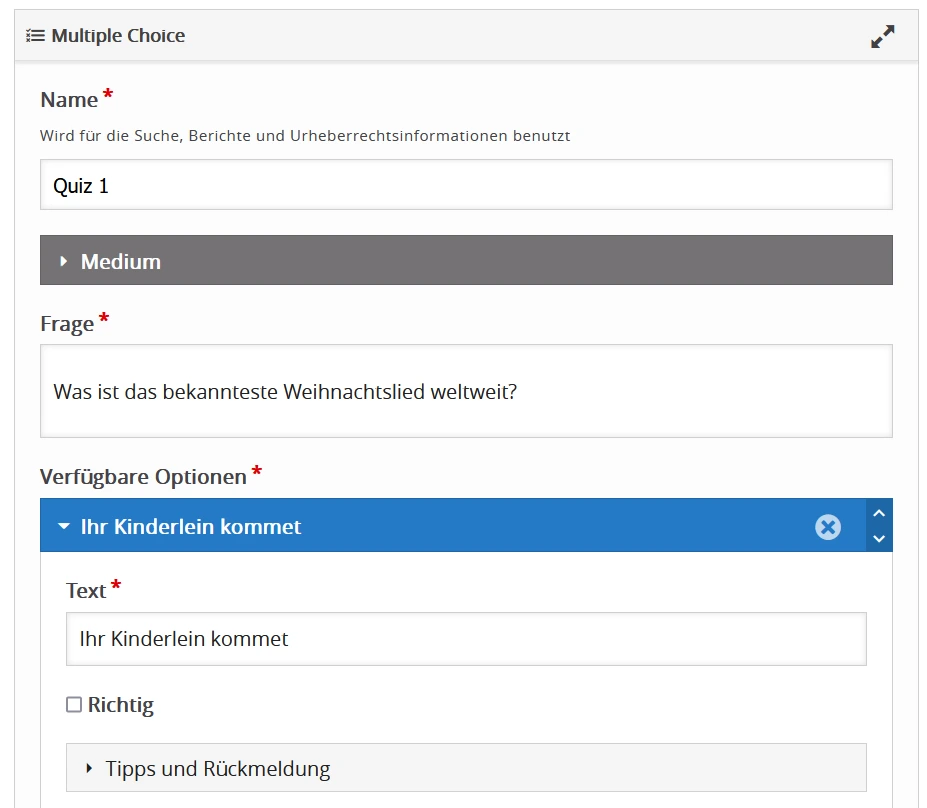 Medienkompetenz: Die Schülerinnen und Schüler erlernen den Umgang mit der Software H5P zur Erstellung von Multiple Choice Aufgaben.