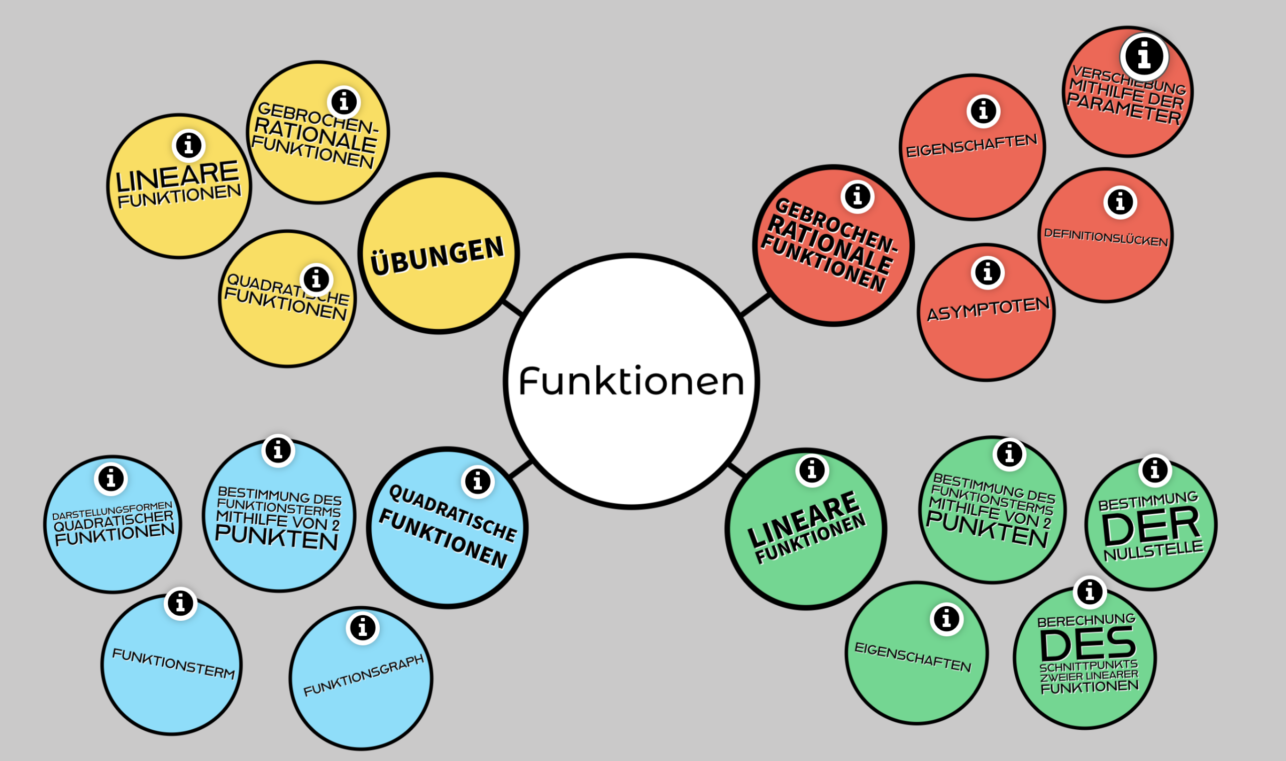 Interaktive Mindmaps lassen sich inhaltsstärker darstellen als ihre analogen Varianten. Die zusätzliche Einbindung von Verlinkungen zu weiteren Übungen, Videos oder Grafiken lässt eine ganzheitliche und strukturierte Darstellung eines komplexen Themengebiets zu.