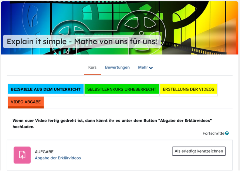 Zusätzlich lernen sie Grundlagen des Urheberrechts kennen. Dadurch sind die Lernenden im Anschluss an das Projekt in der Lage, die entstandenen Videos zu bewerten und schulintern zu „veröffentlichen“. Des Weiteren vertiefen die Schülerinnen und Schüler ihre Fachkompetenz und können nach diesem Projekt selbst Videoaufnahmen planen, gestalten und umsetzen.