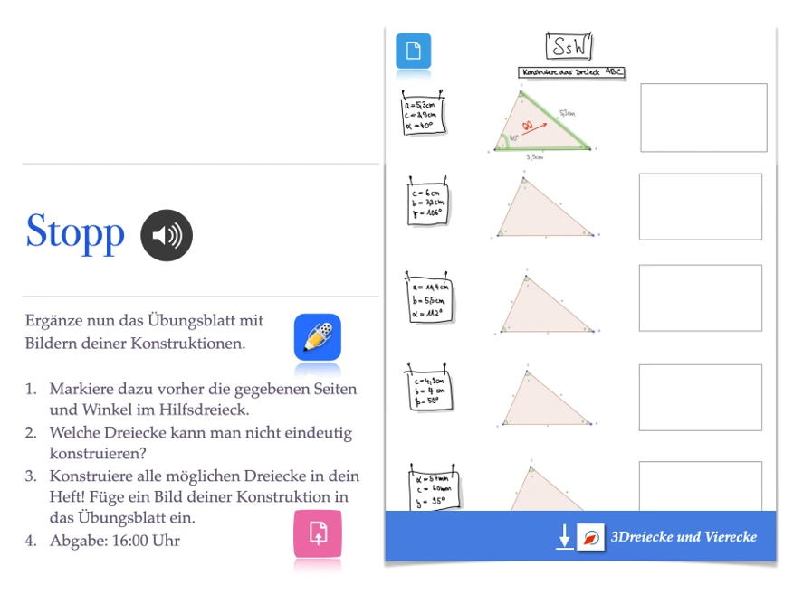 Die technische Ausstattung im 1:1-Setting eröffnet den Schülerinnen und Schülern eine Vielzahl an Möglichkeiten, ihre Unterrichtsdokumentation ansprechend zu gestalten. Dabei sollte aber die Schulung grundlegender instrumenteller Fertigkeiten wie das Zeichnen, Messen oder Konstruieren nicht vergessen werden. Das digitale Heft kann hier als Ergänzung und nicht als vollständiger Ersatz der analogen Unterrichtdokumentation eingesetzt werden. So können beispielsweise geometrische Zeichnungen oder Prozesse mit klassischen Hilfsmitteln angefertigt und dann als Foto in das digitale Heft mit eingepflegt werden.