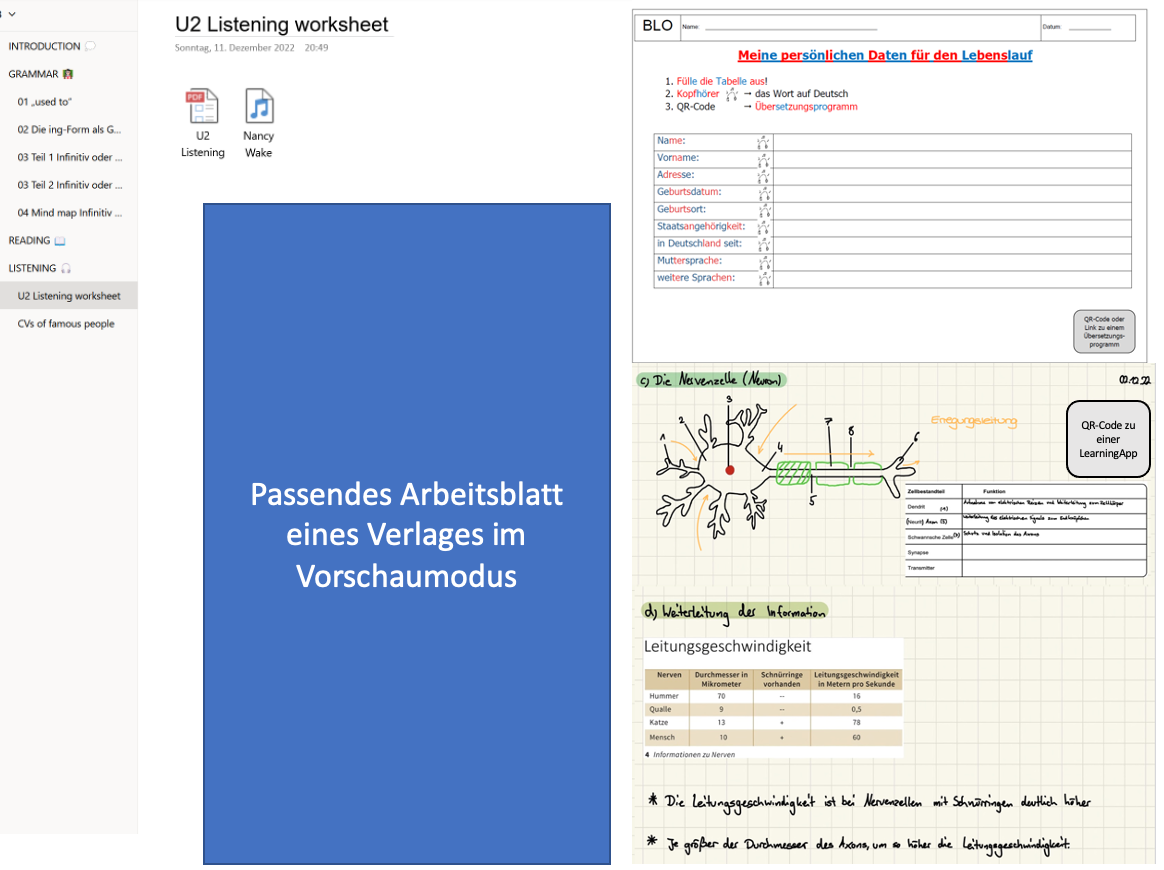 Für meine Schülerinnen und Schüler ist es ein großer Vorteil, dass weitere Medien schnell und unkompliziert in das digitale Heft mit eingebunden werden können. Je nach Notizen-App können ergänzende Quellen, Audio- und Videodateien direkt in das digitale Heft eingepflegt oder alternativ über eingebettete Links aufgerufen und gegebenenfalls weiterbearbeitet werden.