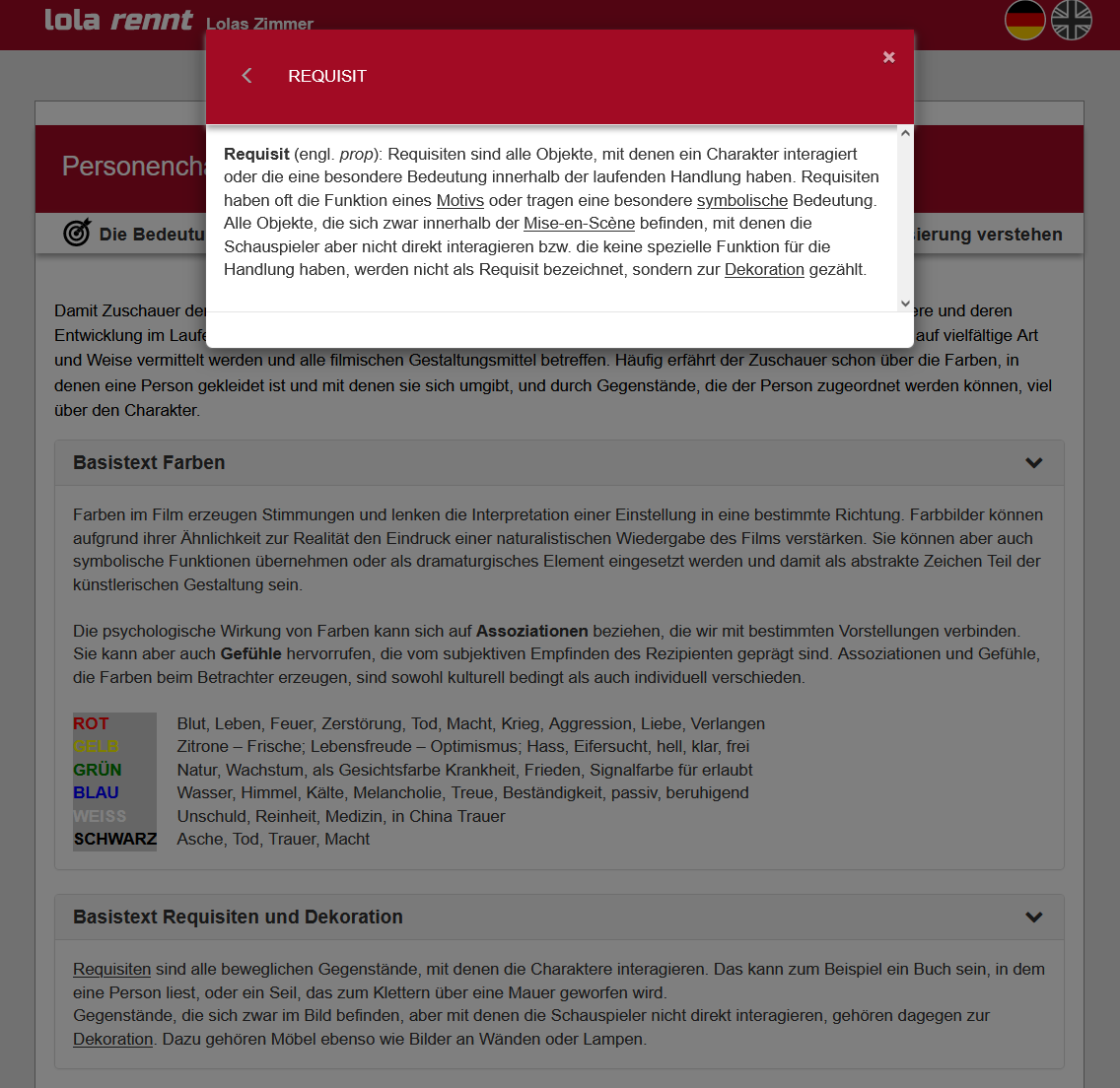 Das Lernpaket ist als Präsentations-, Analyse- und Kommentierungswerkzeug konzipiert. Es bietet sowohl umfangreiches Informationsmaterial als auch interaktive Aufgaben, die ein direktes und aktives Arbeiten an Filmszenen ermöglichen. Im Folgenden erhalten Sie einen Eindruck von den Inhalten:
