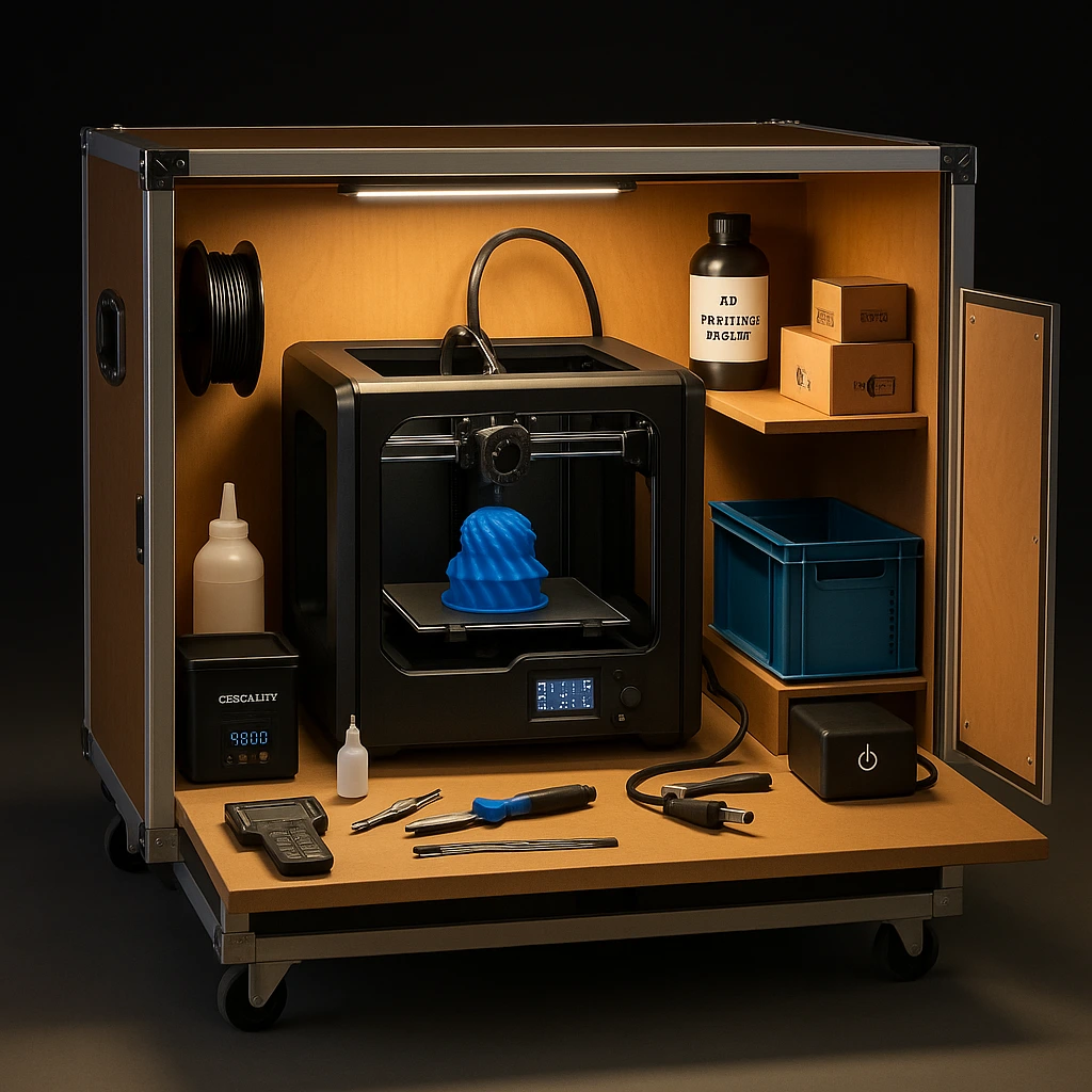 Da gerade an Schulen Räume häufig knapp sind, können Makerspaces auch mobil sein: Kompakt in transportablen Aufbewahrungsmodulen untergebracht, wird die Ausstattung einfach in den Unterrichtsraum gefahren und die Schülerinnen und Schüler können dort arbeiten. Beispiele für mobile Makerspaces: