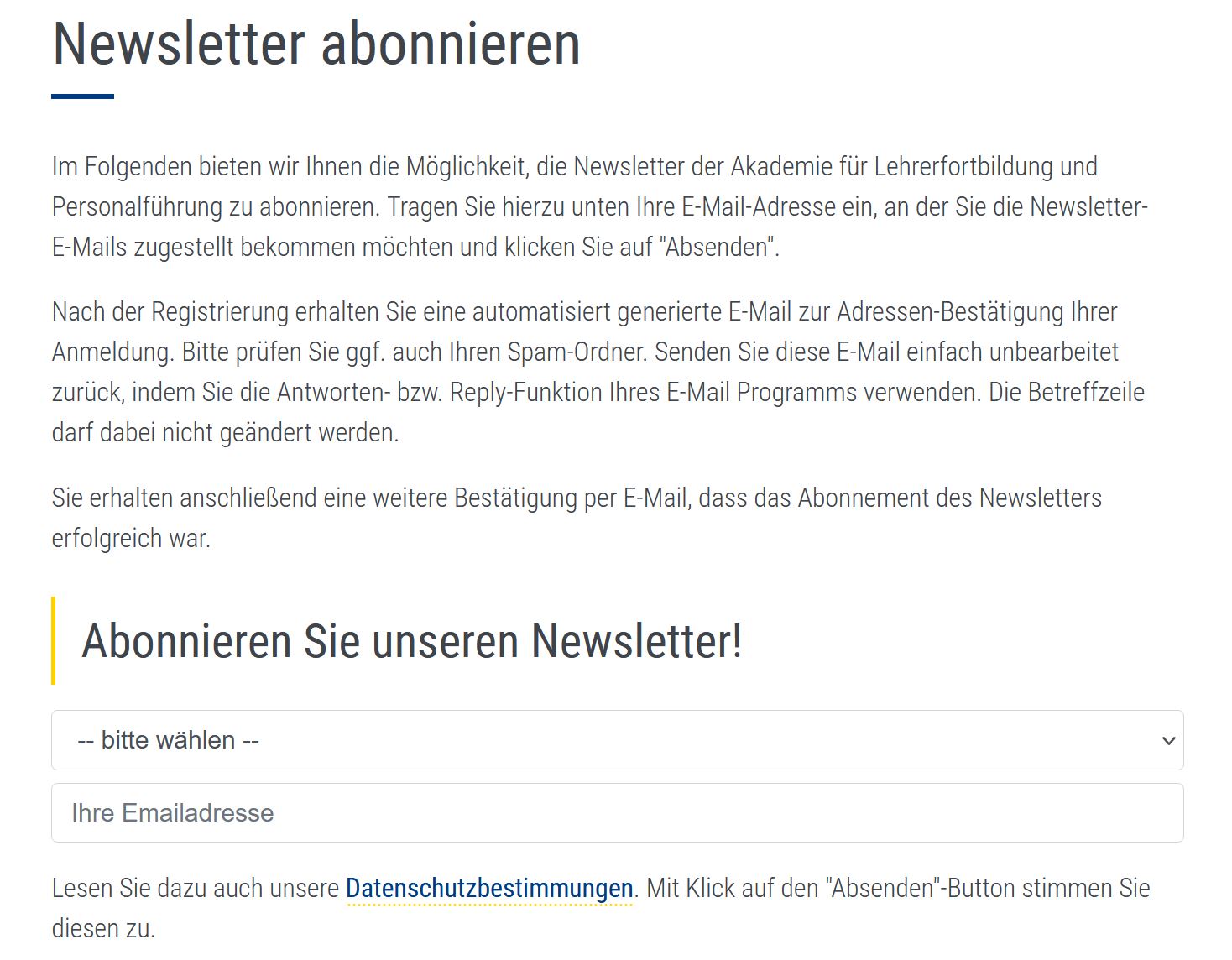 Wir empfehlen den Lehrkräften dazu, den Newsletter der Stabsstelle zu abonnieren. Zusätzlich wird der Newsletter auch über das Infoportal an alle Kolleginnen und Kollegen verschickt. Hier findet man immer wieder neue und aktuelle Impulse für die Weiterentwicklung des eigenen Unterrichts und der bereits etablierten Strukturen an unserer Schule. Insbesondere das Angebot im fachspezifischen Bereich könnten wir an unserer Schule nicht so umfassend abdecken.