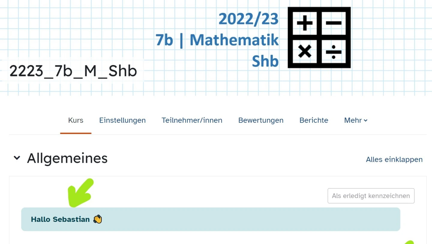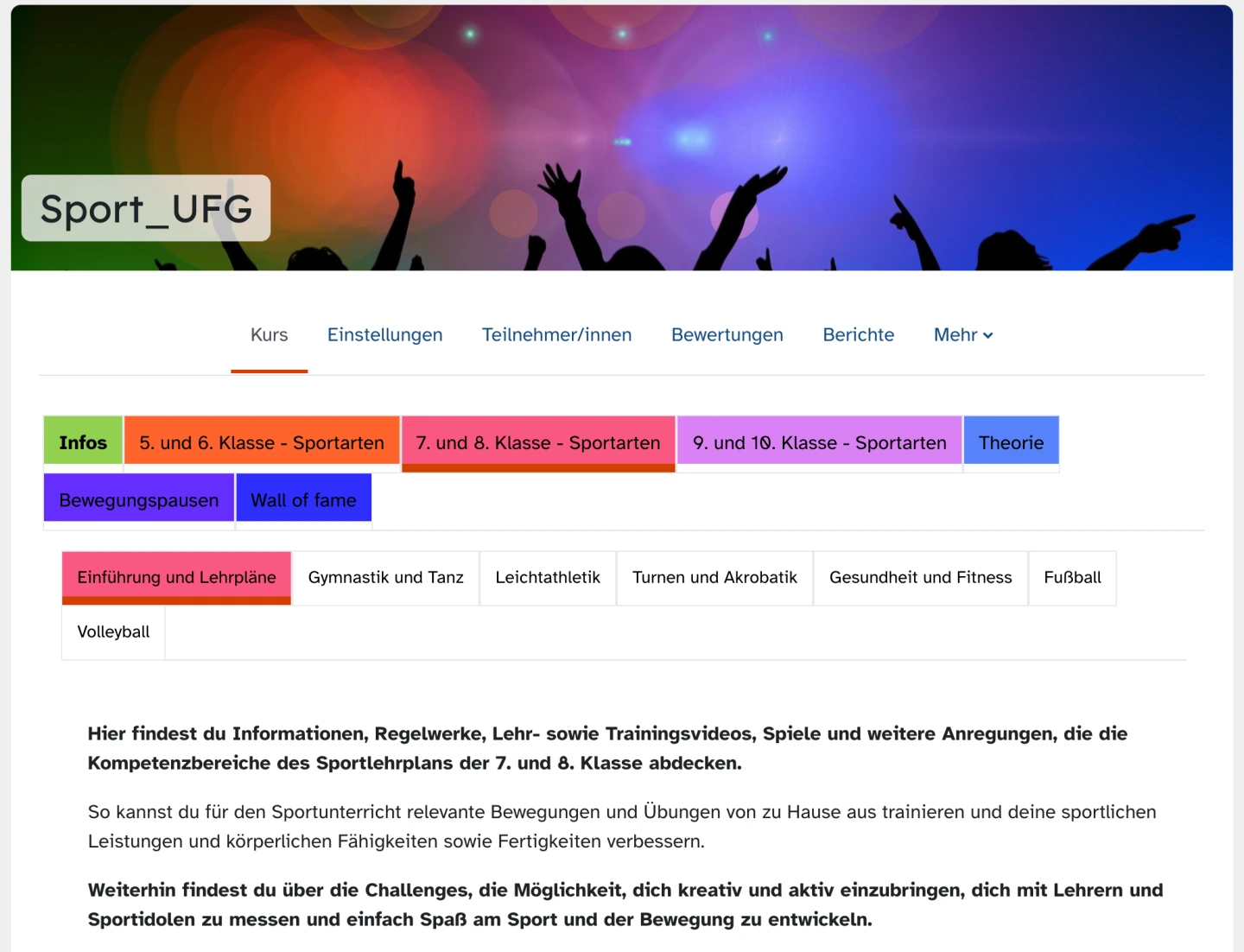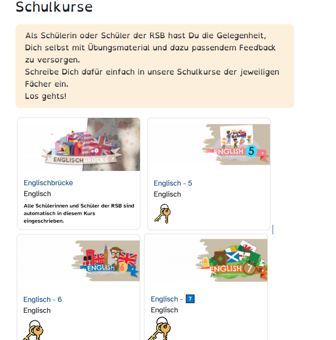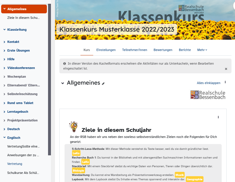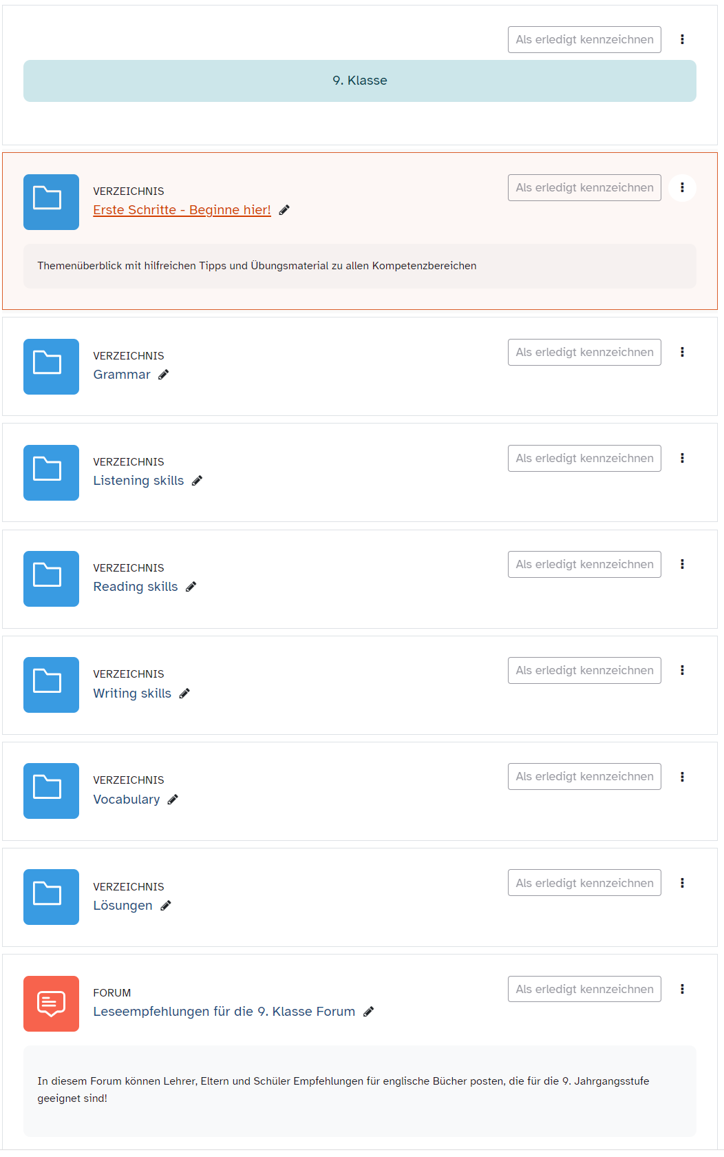 Falls eigene Kurse erstellt werden, sollten diese im Klassenkurs verlinkt werden.