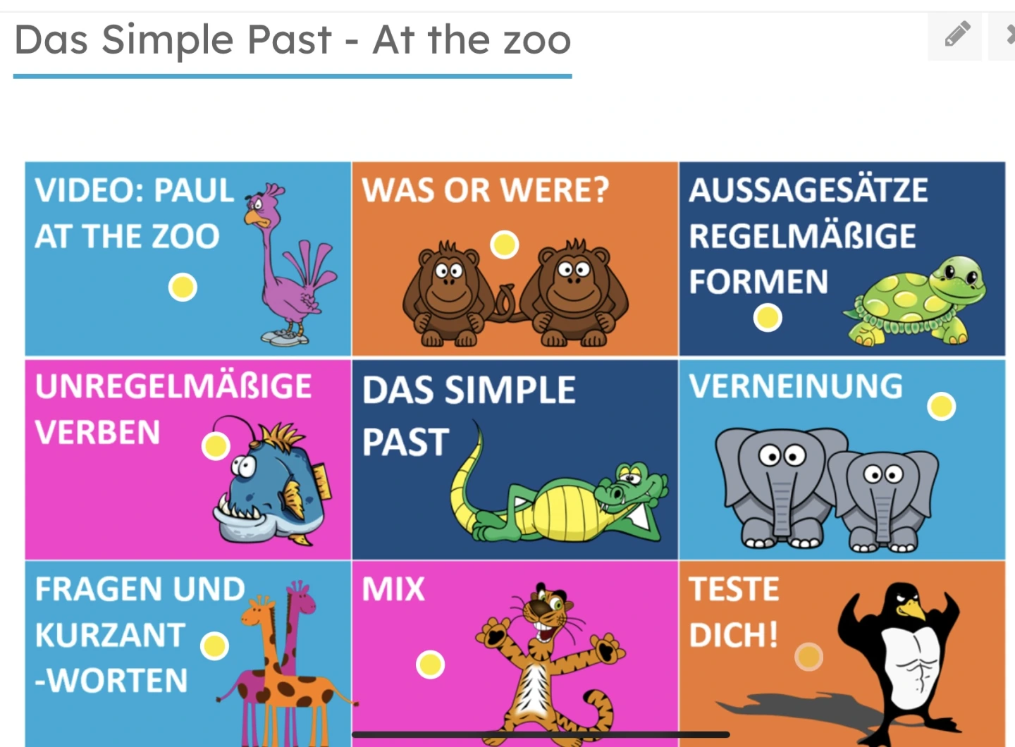 Eine Datei, z. B. mit einer Liste aller bisher bekannten unregelmäßigen Verben, die in jedem Kapitel um die neuen Begriffe erweitert wird und dem Link zu einem browserbasierten Konjugationstrainer, mit welchem die Lernenden üben können.