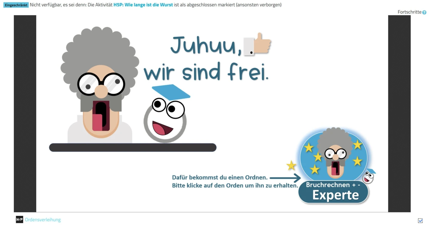 Am Ende des Kurses wird ein zusätzliches Lernspiel angeboten. Dabei wird der Umgang mit Brüchen weiter gefestigt. Durch die Wahl einer externen Plattform außerhalb von mebis kommt ein weiterer Baustein hinzu, der für das abwechslungsreiche Lernangebot in diesem Kurs sorgt.