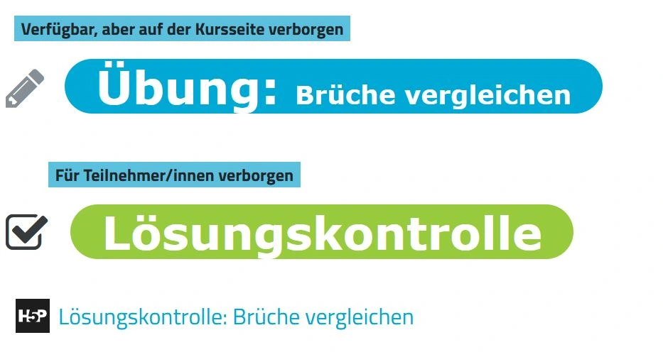 Bei Bedarf können verschiedene Aufgaben gerechnet werden, um die entsprechende Rechenfertigkeit zu festigen. Diese Übungen können mit Hilfe einer H5P-Aktivität selbständig überprüft werden. Die Lernenden können die zusätzlichen Übungsaufgaben auch auslassen, wenn sie ohne diese bereits die richtigen Lösungen gefunden haben. Somit kann jeder in seinem Tempo dem Ziel des Exit-Games näherkommen.