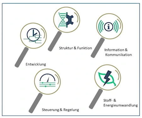Um Konzeptorientierung im Unterricht zu erreichen, wurden im Rahmen des LehrplanPLUS fünf Basiskonzepte für den Biologieunterricht formuliert: