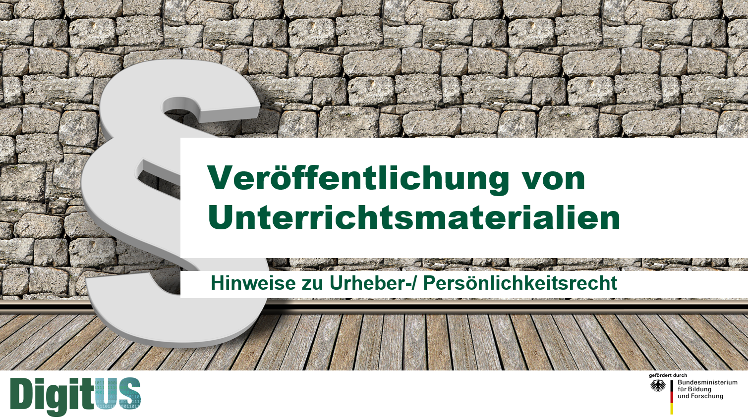 In der Power-Point-Präsentation „Veröffentlichung von Unterrichtsmaterialien des Projekts DigitUS“ wird dargestellt, dass es von der rechtlichen Seite her Unterschiede gibt, ob Materialien innerhalb der Schule, oder mit der Welt, beispielsweise auf Plattformen wie Mundo, geteilt wird. Arbeiten Sie in der Gruppe diese Unterschiede heraus.
