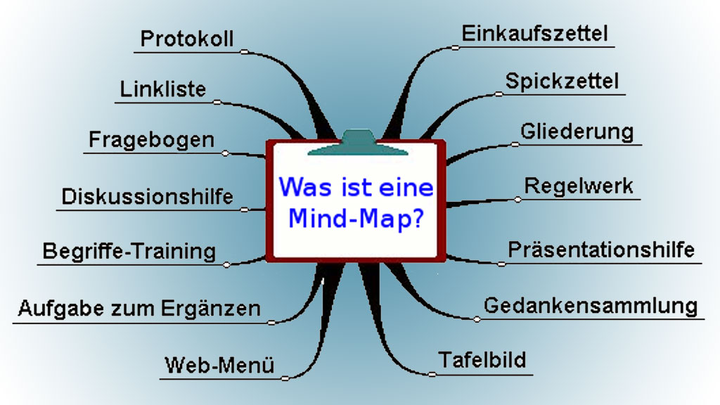 Die fertige und auf Richtigkeit überprüfte Mindmap kann ausgedruckt und zu den Unterlagen der Schüler gegeben werden.