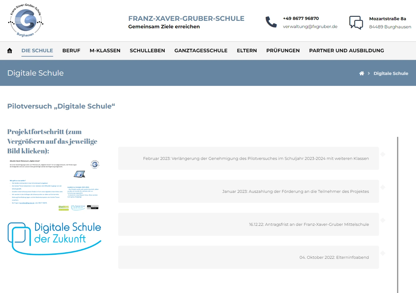„Die Planung der Elternabende an unserer Schule wurde bereits im Schuljahr 2021/2022 durchgeführt, sodass wir die Eltern der neuen 5. Klasse schon in der ersten Schulwoche informieren konnten. Zudem haben wir die Erziehungsberechtigten über unsere Schulhomepage zusätzlich unterrichtet. Dort war ein detaillierter zeitlicher Fahrplan einsehbar. Die Termine der Elternabende, die Bestellphase für die schülereigenen Geräte, die Fristen für Anträge sowie der Beginn der Nutzung dieser Geräte waren übersichtlich in tabellarischer Form dargestellt.”