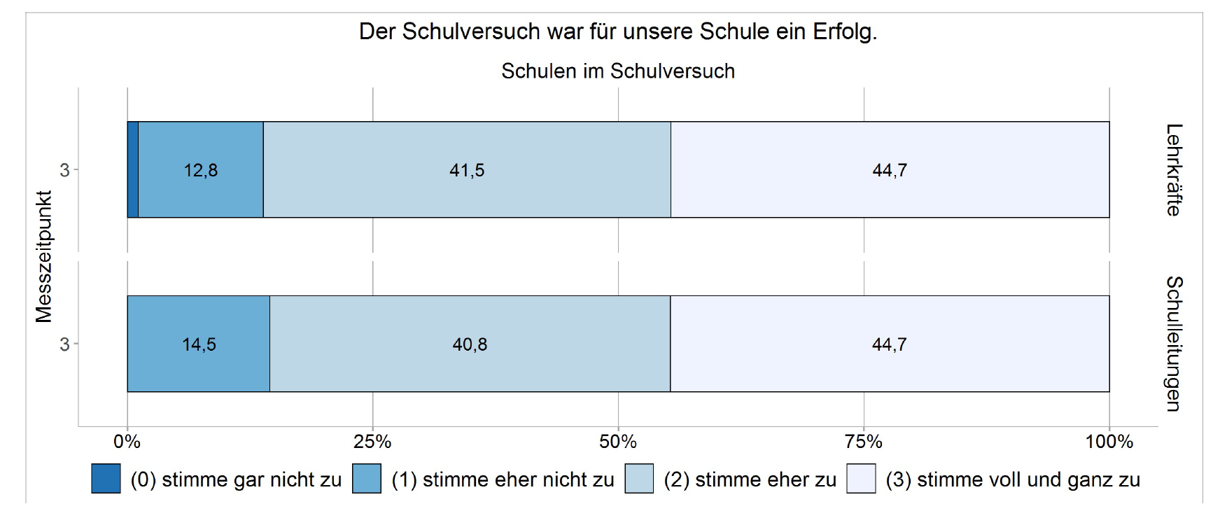 Das Erarbeiten und Implementieren schuleigener Regelungen haben sich für die am Schulversuch beteiligten Schulen als gewinnbringend herausgestellt. Die große Mehrheit der Schulleitungen als auch der Lehrkräfte schätzt die an den Schulen entwickelten Regelungen insgesamt positiv ein.