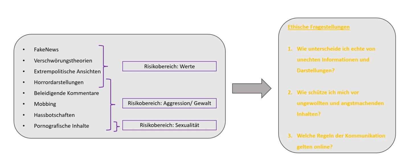 Die Aussagen von befragten Kindern und Jugendlichen bestätigen somit die zu Beginn genannten ethischen Fragestellungen. Diese finden sich auch in den von 10 Geboten der digitalen Ethik (vgl. Engel u. a. , 2024) wieder: