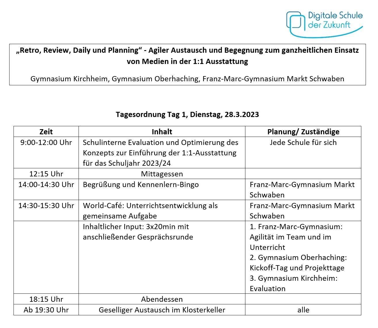 „Retro, Review, Daily und Planning“ – Agiler Austausch und Begegnung zum ganzheitlichen Einsatz von Medien in der 1:1 Ausstattung | Der Titel der Veranstaltung leitete sich aus dieser Zielsetzung ab und benennt zugleich die Methode des agilen Projektmanagements, mit der die Veranstaltung geplant und durchgeführt wurde. |