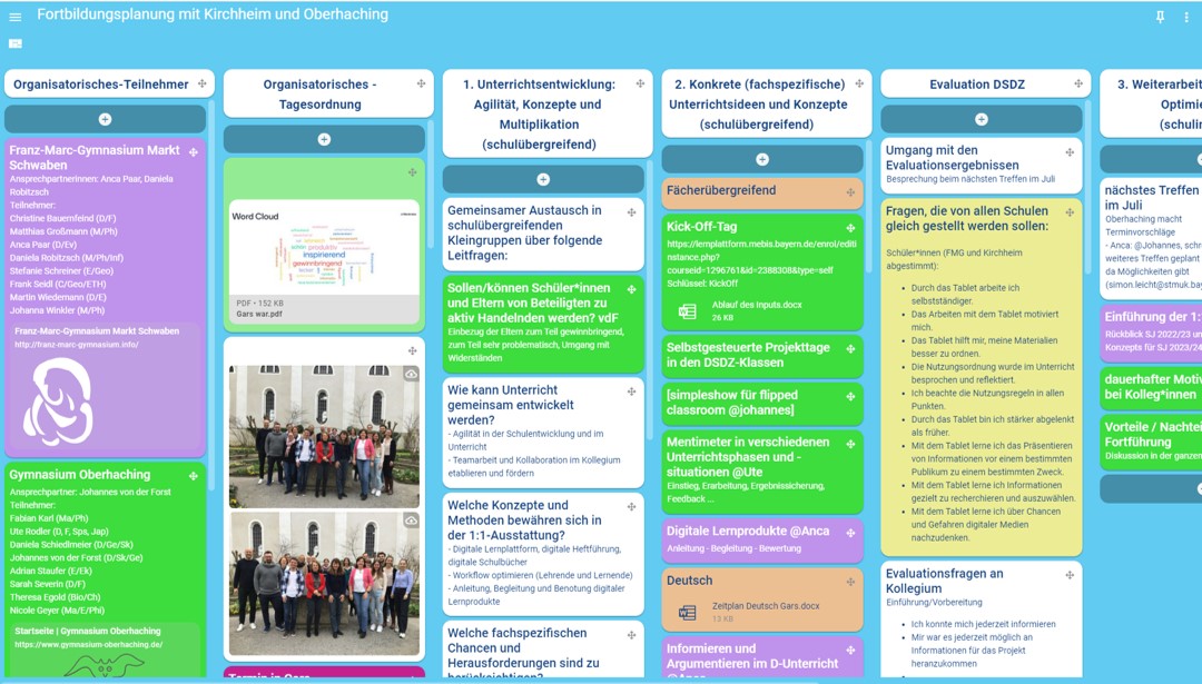 Die Organisation und die Planung der Veranstaltung erfolgte in Videokonferenzen durch ein kleines Team mit jeweils ein bis zwei Vertreterinnen und Vertretern aus jedem der drei Gymnasien. Ergänzend wurden auf einer digitalen Pinnwand die wichtigsten Ergebnisse, Planungsschritte und Aufgaben dokumentiert.
