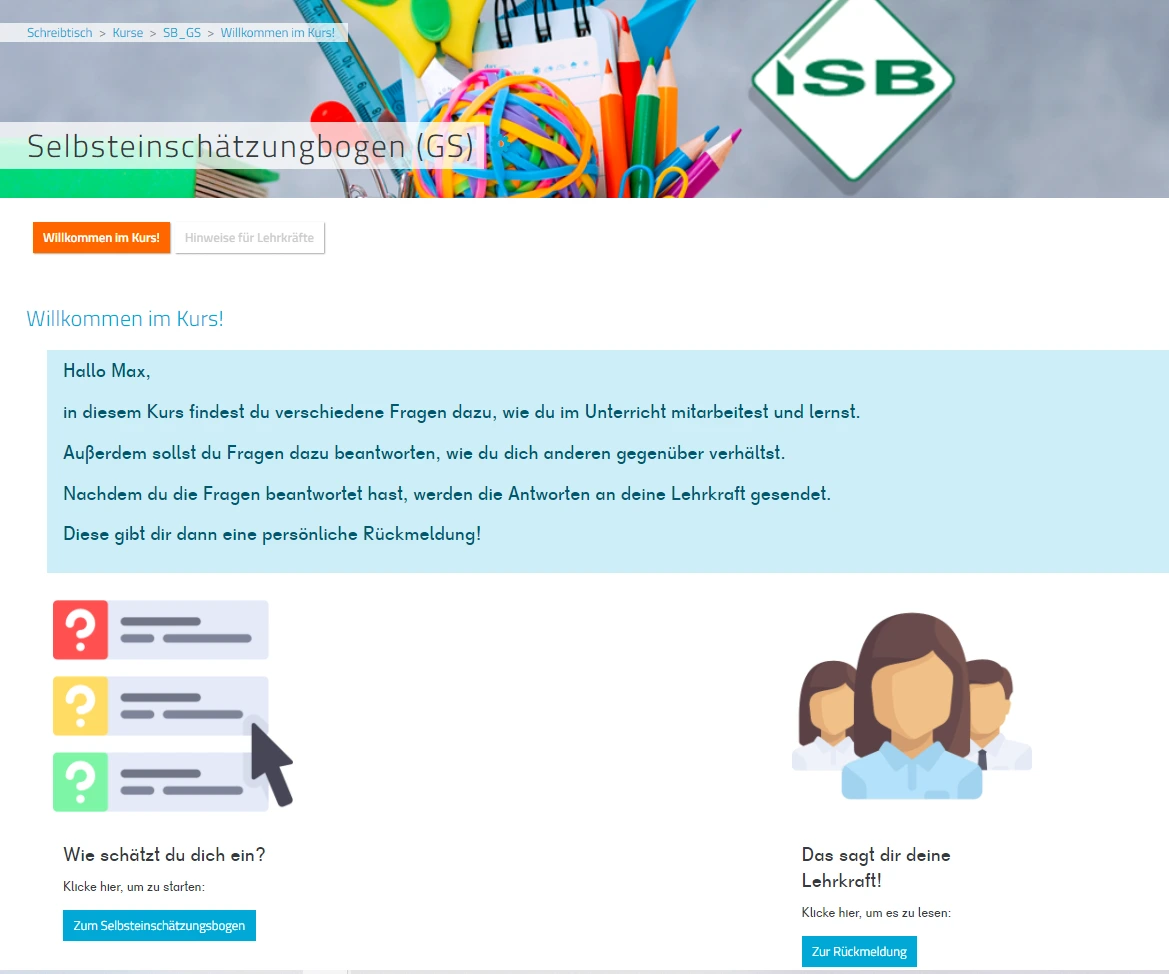 Der teachSHARE-Kurs „Selbsteinschätzungsbögen (GS)“ ist als Selbstlernkurs für Schülerinnen und Schüler der Jahrgangsstufe 2 bis 4 konzipiert. Er ist so gestaltet, dass er von ihnen selbständig mit möglichst wenig Hilfe von Erwachsenen bearbeitet werden kann.