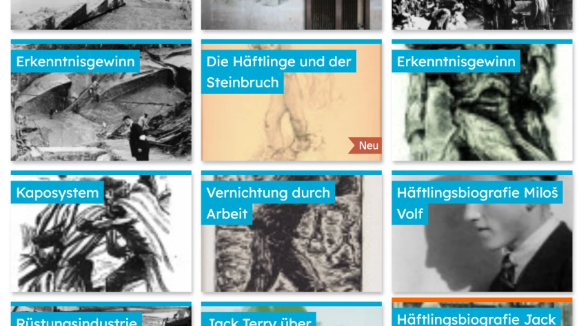 Der Kurs ist im Kachelformat angelegt, für jedes Kapitel existiert eine eigene Kachel. Die einzelnen Kacheln führen in chronologischer Reihenfolge durch die geschichtliche Entwicklung des KZ, vom Steinbruch über die Rüstungsindustrie hin zu der heutigen Verwendung. Die Kursnutzerinnen und -nutzer können aber von dieser abweichen, da jedes Kapitel auch direkt abrufbar ist. So ist auch die Auswahl einzelner Aufgaben möglich. Die erste Kachel dient als kurze Einführung für die Schülerinnen und Schüler. Die letzte Kachel informiert die Lernenden über die Möglichkeit der Feedback-Abgabe zum Kurs direkt an die Bildungsabteilung der KZ-Gedenkstätte.
