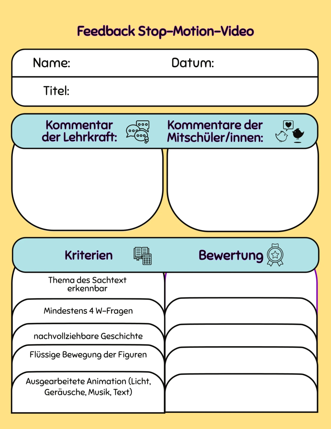 Diese Antworten dienen als Grundlage für das Storyboard des Stop-Motion-Videos.