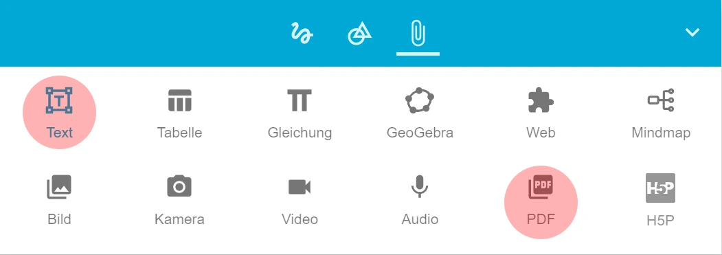 Hiermit können Sie Texte schreiben und PDF auf der Tafel platzieren.