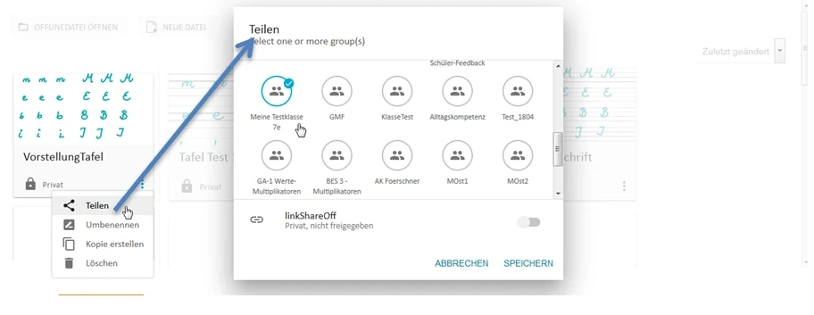Teilen Sie Ihre Tafeldatei über die Gruppenteilung.