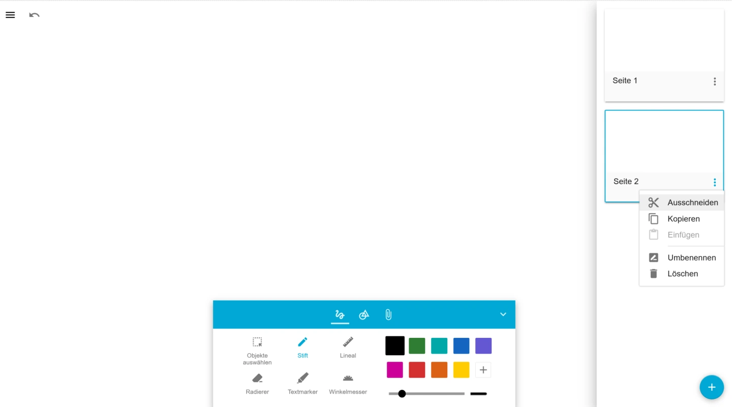 Erstellen Sie zwei neue Seiten in Ihrem Tafelbild und wählen Sie die zweite Seite aus, um diese zu bearbeiten!