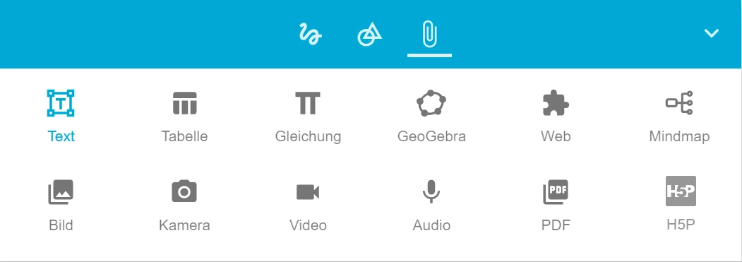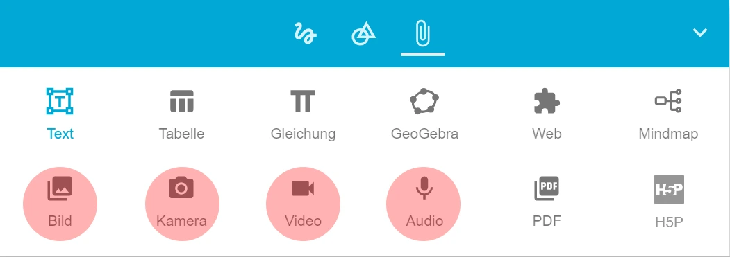 Hiermit können Sie Audio, Video und Bildmaterial in die Tafel integrieren.