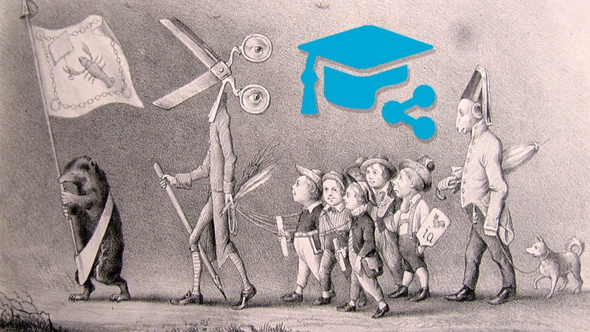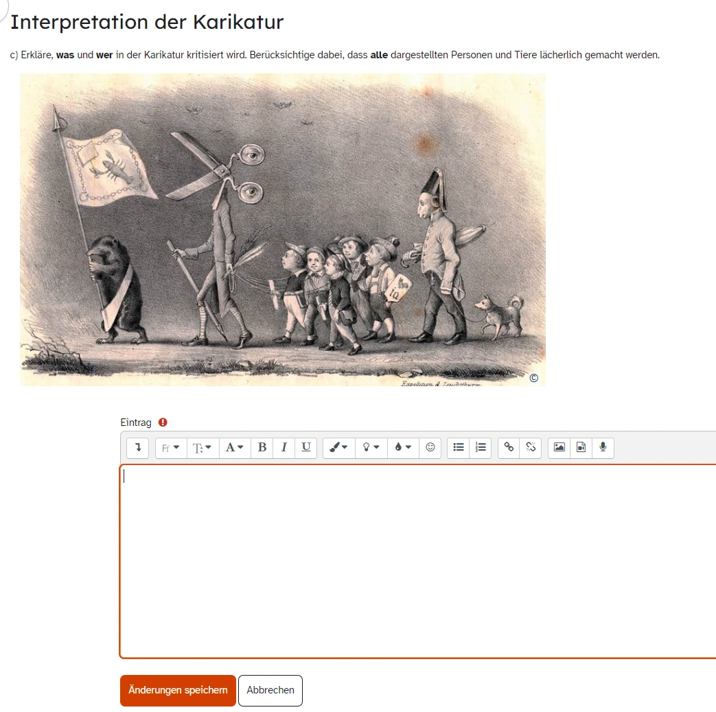 Eine gezeichneter Kommenter zur Pressezensur im 19. Jahrhundert ist Ausgangspunkt des teachSHARE-Kurses „Die gute Presse”. Die Schülerinnen und Schüler erarbeiten sich die Inhalte im eigenen Tempo und setzen sich dabei selbstsändig mit den Kursinhalten auseinander. Für schnelle Lernende werden zusätzliche Aufgaben angeboten. Der Kurs eignet sich besonders für heterogene Lerngruppen.