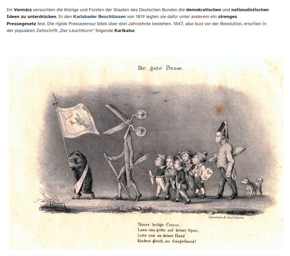 Thematische Grundlage: Karikatur zur Zensur aus der Zeit des Vormärz (Geschichte 8. Klasse, Gymnasium und Realschule)