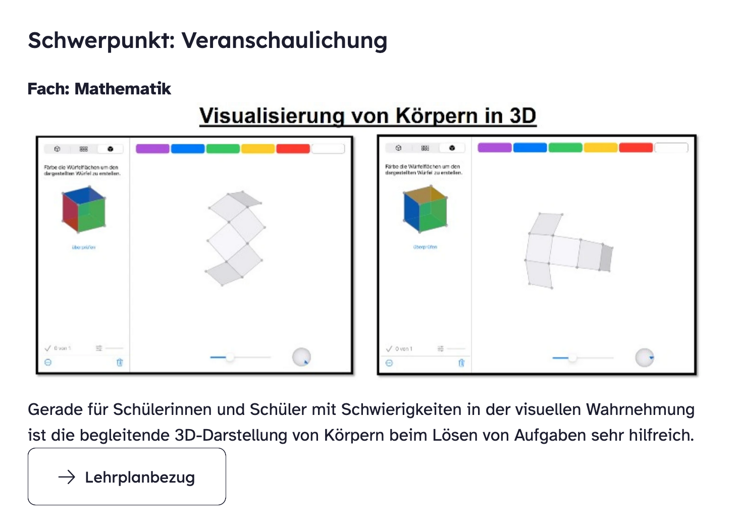 Zur Differenzierung durch lernstandsspezifische Aufgaben werden die Möglichkeiten digitaler Medien genutzt.