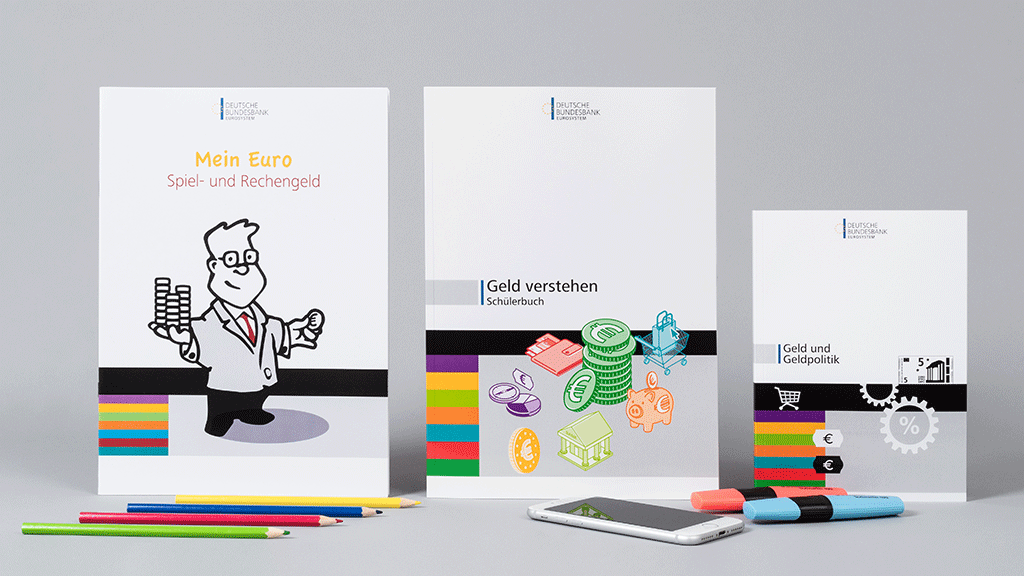 Die Deutsche Bundesbank bietet Lehrkräften aller Schulstufen Materialien zum direkten Einsatz im Unterricht sowie interessierten Schülerinnen und Schülern zur persönlichen Weiterbildung. Alle Materialien sind kostenfrei erhältlich und vermitteln grundlegende Kenntnisse aus den Bereichen Geld, Währung und Zentralbank als Teil der wirtschaftlichen Allgemeinbildung.