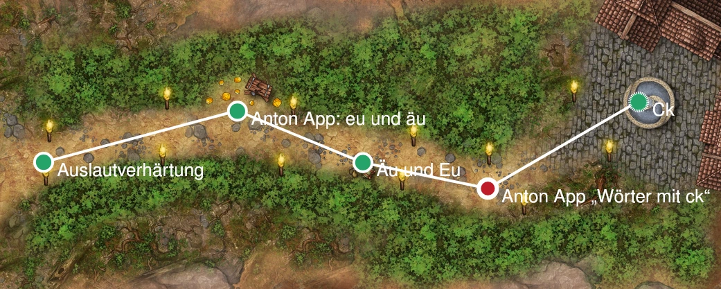 „Diese Lernlandkarte ist sukzessive in Zusammenarbeit mit den Lernenden entstanden. Die Übungen haben die Schülerinnen und Schüler mit H5P u. a. in Learningapps selbst entwickelt und wurden dann im Anschluss eingefügt. Dadurch sind sie beliebig oft wiederholbar und werden automatisiert korrigiert. Damit die Lernenden selbst Übungen erstellen können, müssen sie in mebis zuvor zu Autoren gemacht werden.“