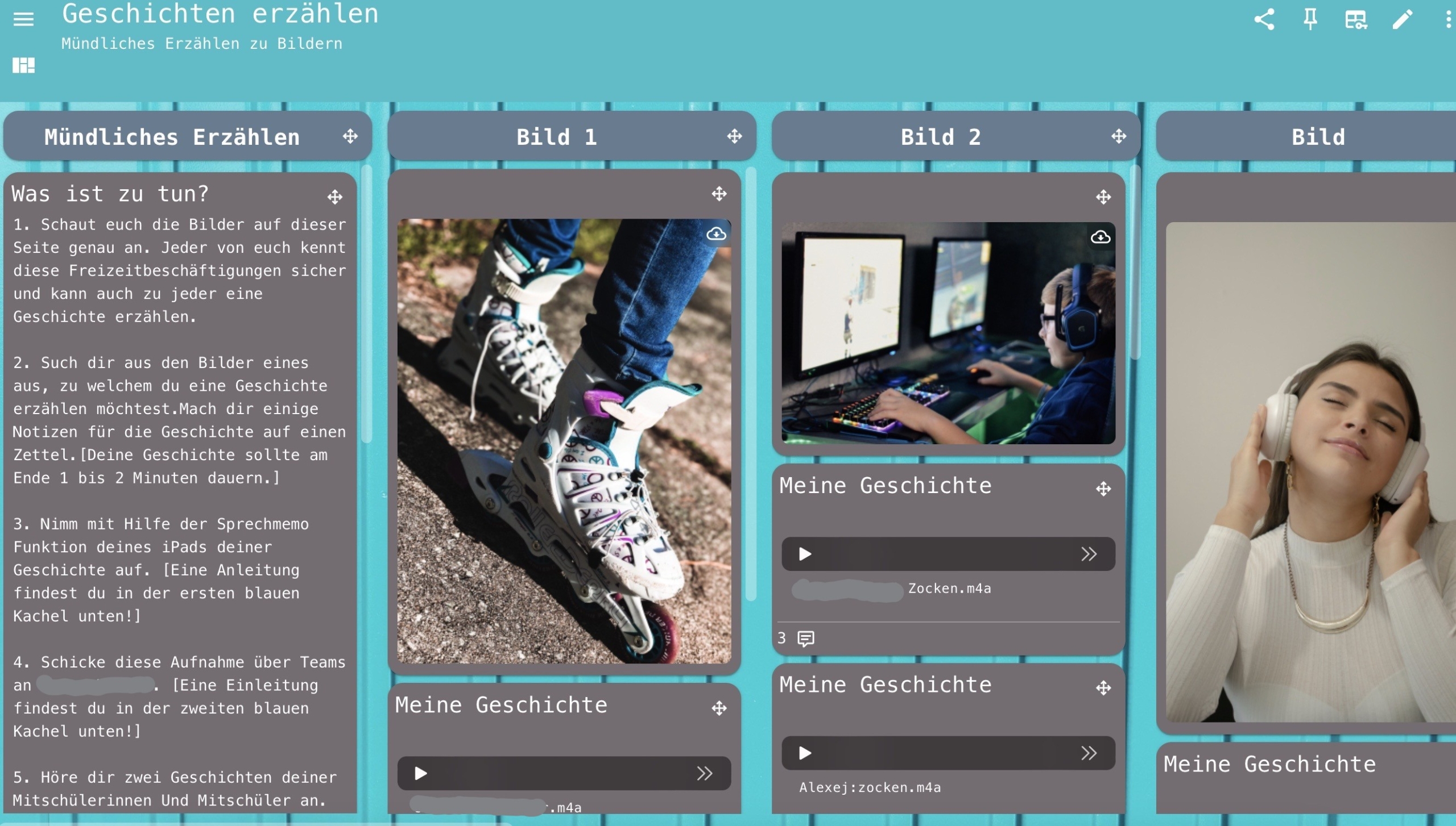 „Statt einer rein analogen Bearbeitung machen sich die Schülerinnen und Schüler erst analoge Notizen und erstellen anschließend eine Tonaufnahme mit ihrer Kurzerzählung. Zusätzlich sollen zwei Beiträge von Mitschülerinnen bzw. Mitschülern angehört und kommentiert werden.