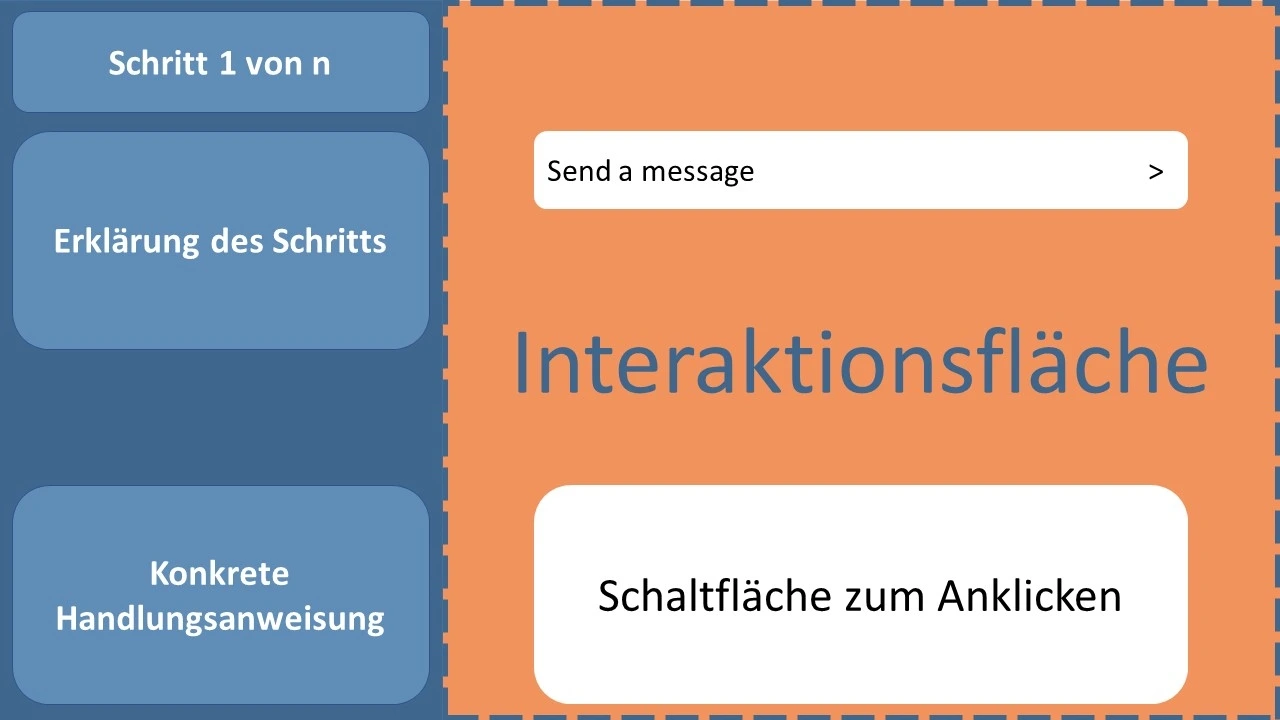 Der zweite Teil zeigt Ihnen Schritt für Schritt, wie Sie die Förderstrategie umsetzen. Dabei simulieren Sie gleichzeitig die Umsetzung, indem Sie auf Elemente der Interaktionsfläche rechts klicken.