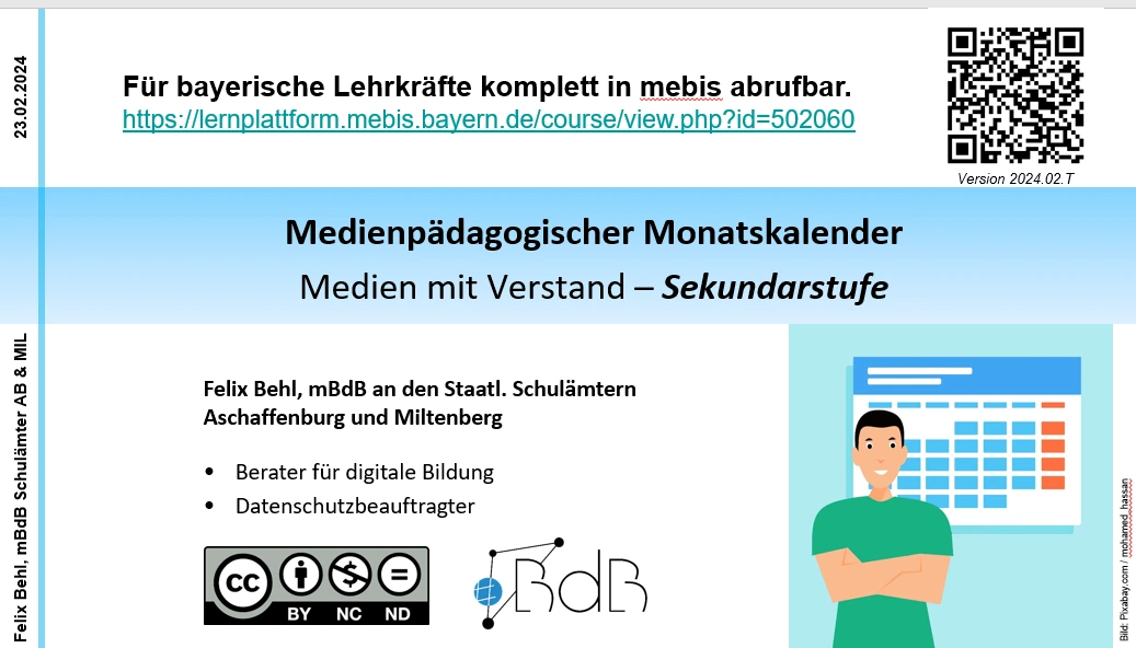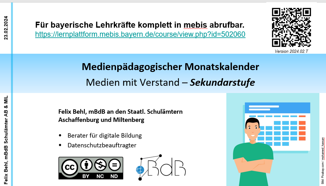 Das Unterrichtsmaterial zum medienpädagogischen Monatskalender kann von bayerischen Lehrkräften in einem mebis-Lernplattformkurs kostenfrei heruntergeladen werden.
