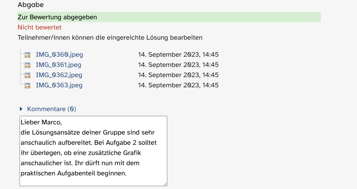 Die Lernplattform ermöglicht es, den Unterricht an die individuellen Bedürfnisse der Lernenden anzupassen. Es werden verschiedene Materialien, Aufgabenstellungen und Ressourcen in Textfeldern oder als Dateien bereitgestellt, um unterschiedliche Lernstile und Interessen zu berücksichtigen. Sie können auch Aufgaben und Projekte entwickeln, die den Fähigkeiten und Interessen der Schülerinnen und Schüler entsprechen.