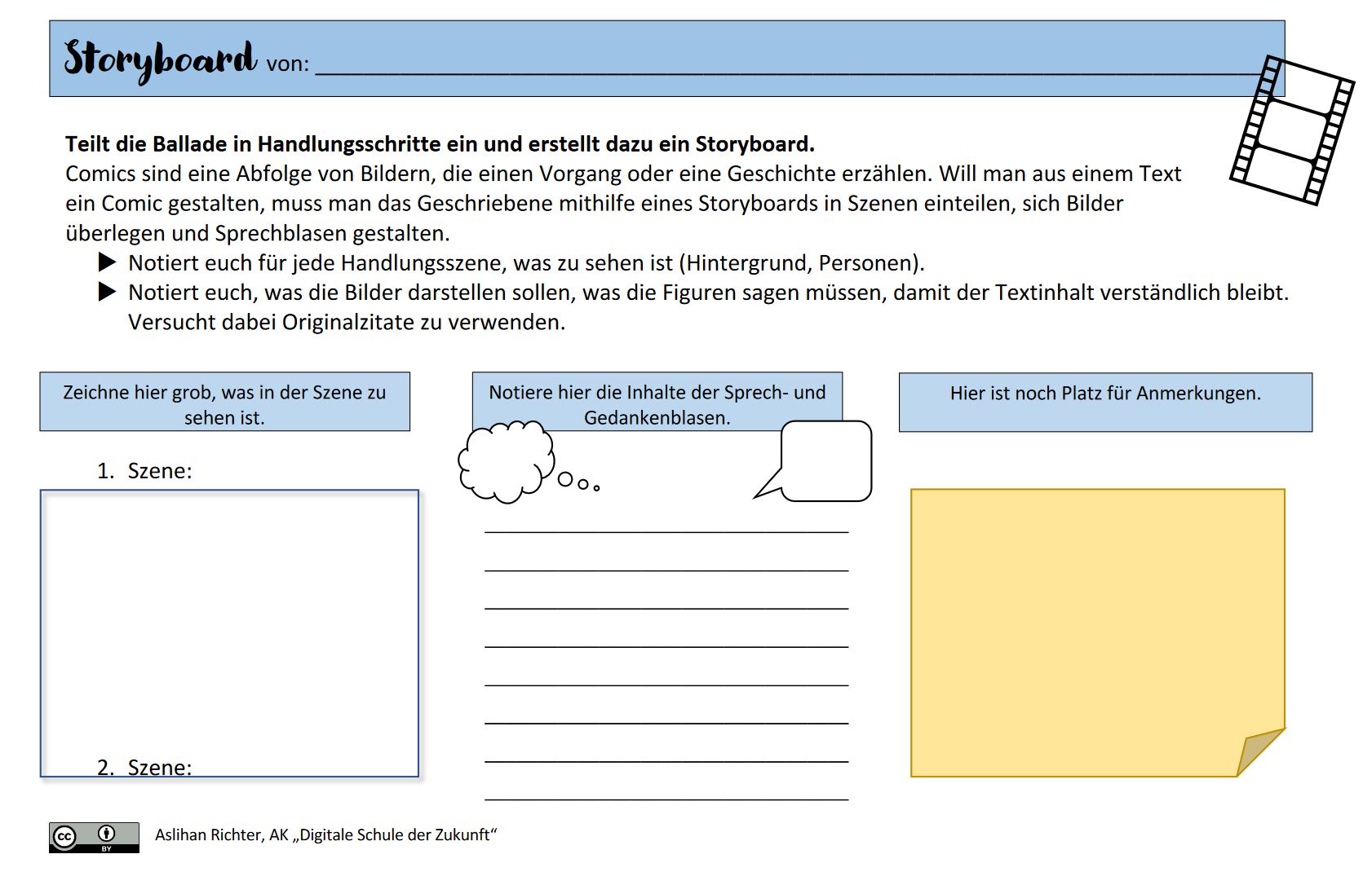 Wie bei vielen anderen Lernprodukten ist es auch bei der Comicerstellung wichtig und sinnvoll, dass vorab ein Storyboard angefertigt wird.
